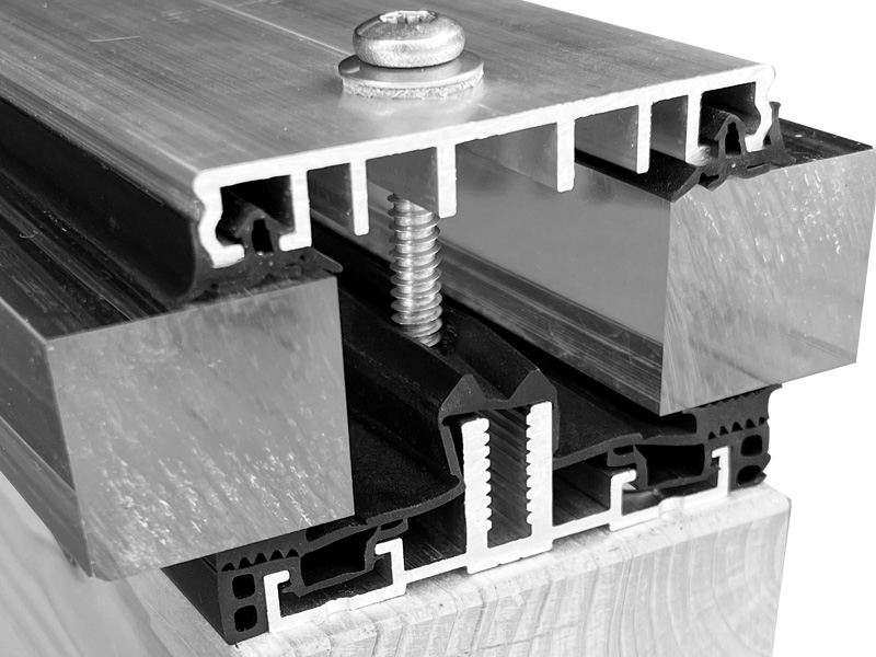 Auflageprofil AG.100.e und Klemmprofil Alu blank P.100.e inklusive Dichtung F.100-15.e und 0.101.e